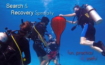 | De PADI Zoeken en bergen-cursus Heb je ooit iets in het water laten vallen? Ben je op zoek naar verloren “schatten”? In de PADI Search and Recovery Diver-specialty leer je hoe je zo efficiënt mogelijk voorwerpen onder water vindt, en hoe je ze naar de oppervlakte brengt. Klein, groot, of gewoon lastig, er is een manier om ze omhoog te brengen |